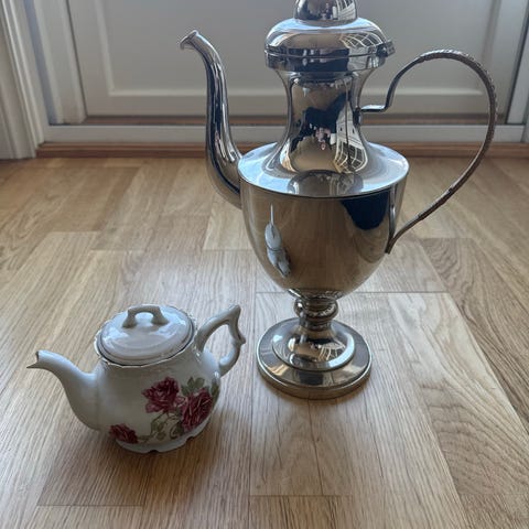 Hackefors kaffe/tekanne i porselen med dekorative blomster.