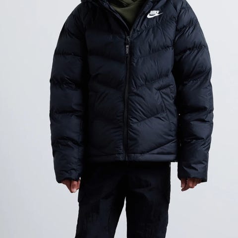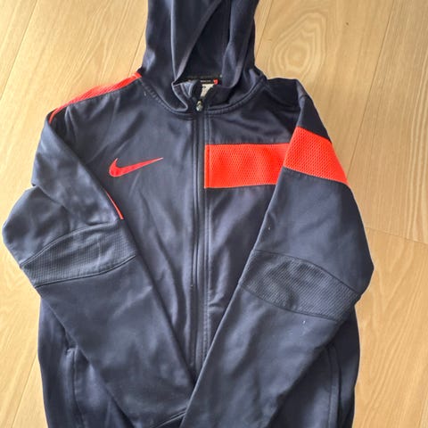 Nike Therma-FIT jakke i størrelse 170 for gutt. Jakken er svart og laget av polyester. Den har isolerende egenskaper og er designet for å holde brukeren varm.