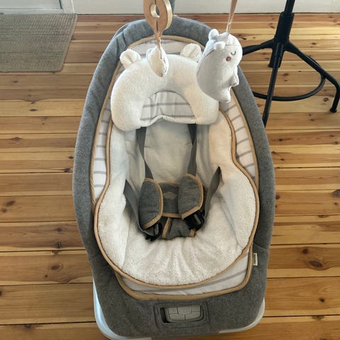 Selve vippestolen kan tas av stativet og har vibrasioner i sete (går på batteri AA eller AAA). I selve stativet er det sving og vippestolen kan stå i begge retninger så du vår sving fra side til side eller frem/tilbake. Enkel musikk i stativet, men kan bruke AUX for egen musikk. Bamsene snurrer og det er lys rundt dem, samt speil som fanger oppmerksomhet og skaper søvnighet. Stativet kobles lett til en stikkontakt og drives av fast strøm.
