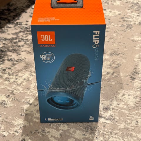 Selger en JBL Flip 6 Bluetooth-høyttaler i svært pen stand. Lite og pent brukt, fungerer 100 % som den skal. Leveres komplett i original eske, slik vist på bildene. Lader følger med.