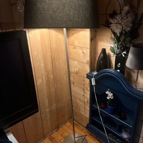 Meget pen og moderne gulvlampe med 3 stk lyskilder/bulber/kulper. Står stødig. Enkel å betjene og gir godt lys.