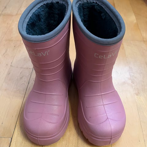 CeLaVi barnestøvler for jenter i størrelse 34. Støvlene er rosa med nydelig blomsterprint og har en slitesterk såle. Egnet for bruk i vått vær.