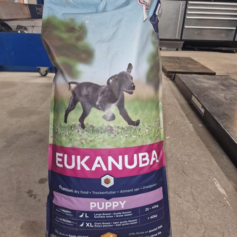 Selges da i overgang fra puppy til adult, oppdaget vi at hunden vår er allergisk til kylling. Det er ca 2/3 igjen, derfor selges billig.