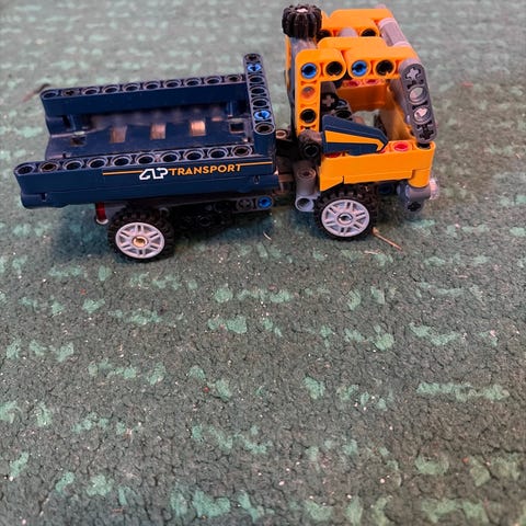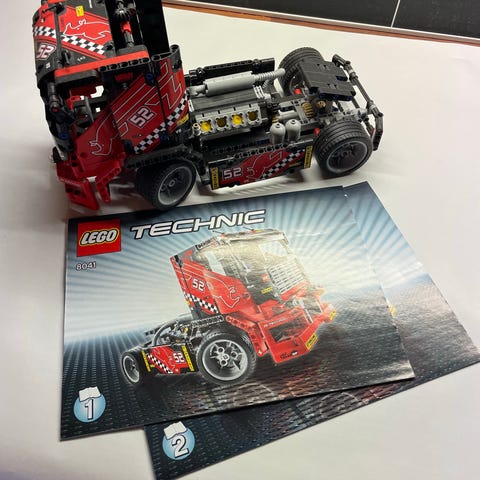 LEGO Technic lastebil i rød farge. Egnet for barn som liker byggesett og tekniske leker.