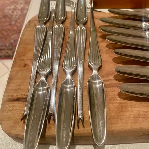 Skalldyrgafler fra Karl Jørgen Otteren. Norsk gullsmedkunst på sitt beste.