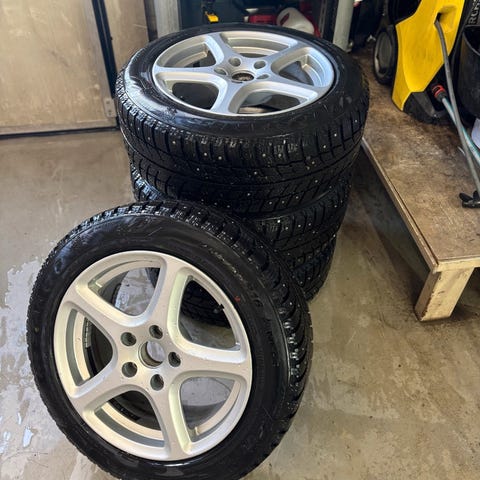 Selger et sett med piggfrie vinterhjul, godt mønster i alle 4 dekk