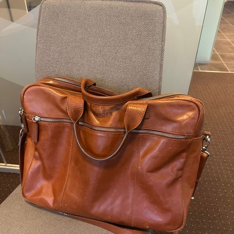 Pent brukt skinnveske med noen få bruksmerker.