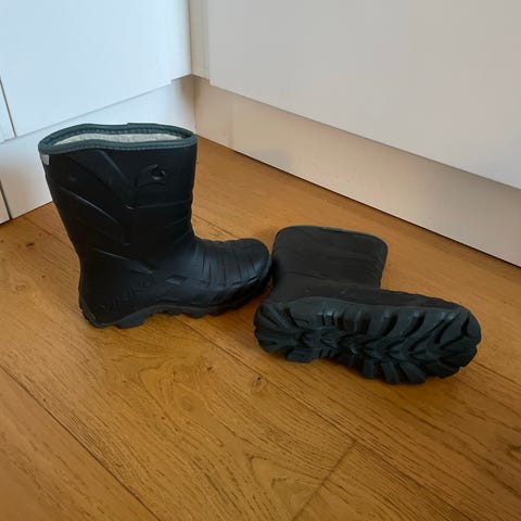 Viking barne vinterstøvler i størrelse 34, designet for unisex bruk. Støvlene er laget med slitesterkt materiale som gir beskyttelse mot vintervær. Sålen har godt grep for økt sikkerhet på glatte underlag. Mykt fôr inni. Lite brukt / nesten som ny.