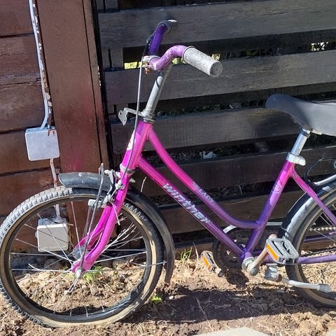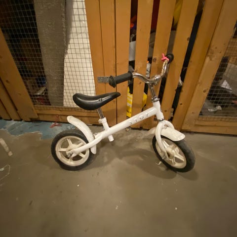 Pedalene fjernet (og ødelagt/kastet) og gjort om til balansesykkel