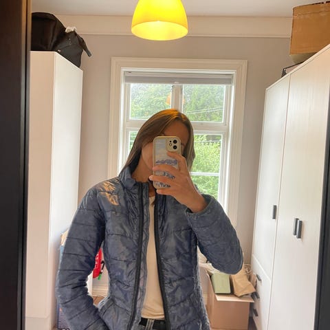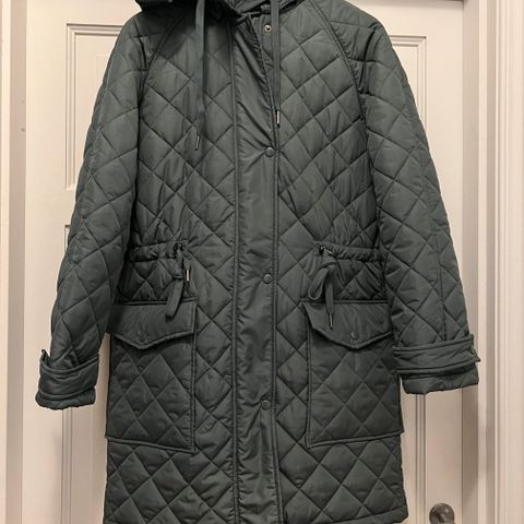 Soyaconcept jakke i størrelse M, farge grønn. Jakken har quiltet mønster og lengde som dekker over hoftene. Den har glidelås foran og sidelommer.