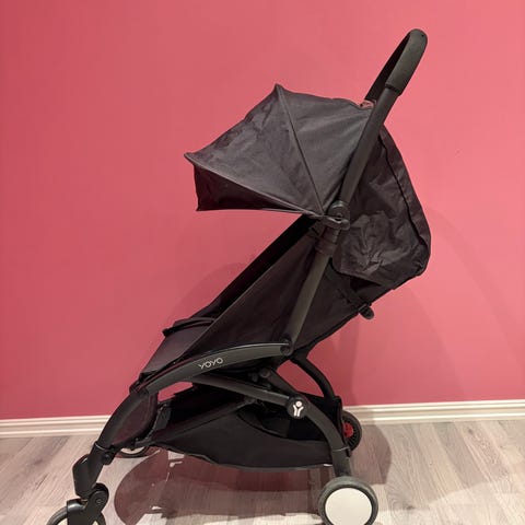 BABYZEN YOYO+ barnevogn/trille i fargen beige. Den er kjøpt ny av oss, og er veldig pent brukt. Barnevognen blir veldig kompakt når den legges sammen, og går som håndbagasje på fly. Den har en praktisk bærereim som gjør det enkelt å bære den med seg når den er lagt sammen. Det følger med originalt regntrekk, som er brukt kanskje 1-2 ganger.