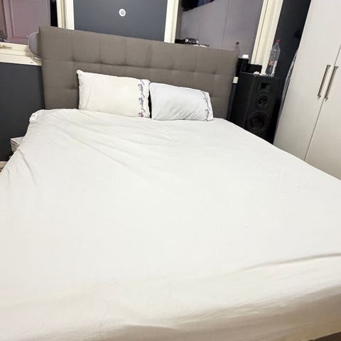 Seng kjøpt for 1 år siden. Stått på gjesterom og blitt brukt svært lite. Sengen er myk.