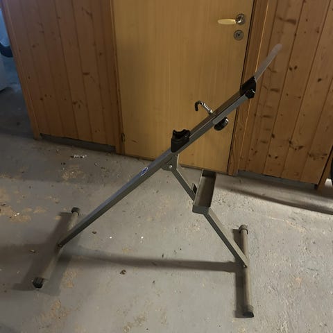 Mekkestativ til sykkel, kjøpt på Jula. Brukt 1 gang. Fin presang til sykkelinteressert ungdom eller voksen.