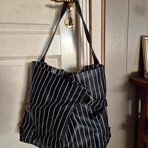Zara dameveske laget av skinn i i svart farge. Vesken har en enkel og funksjonell design med justerbar skulderrem.Passer fint til pc og rommer veldig mye.ingen slitasje