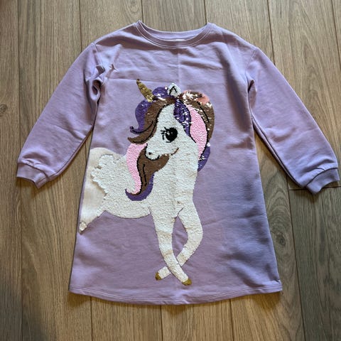 H&M kjole i størrelse 122, lilla farge, laget av polyester. Designet for jenter.
