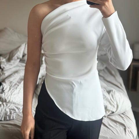 Har fine skulderdetaljer og en drapert front som gir et sofistikert uttrykk.