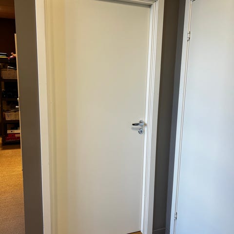 Fremstår som ny, ubrukt. Karm og håndtak følger ikke med, bare selve døren. Passer for standard innerdøråpning 70×200.