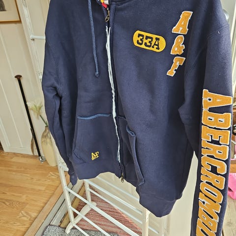 Nike Sportswear hettegenser for herre i størrelse L. Genseren har hette, halv glidelås foran, og trykte detaljer på ermer og bryst. Materialet er mykt og egnet til hverdagsbruk!