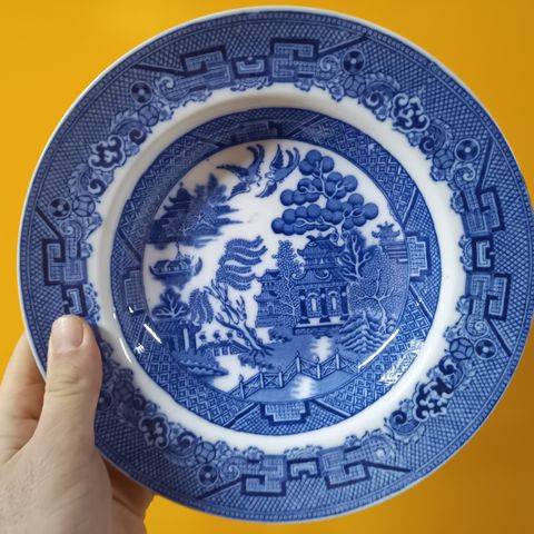 En fettflekk på en middagstallerken, litt feil i fargen fra produksjonen på en annen. Se detaljbilder.