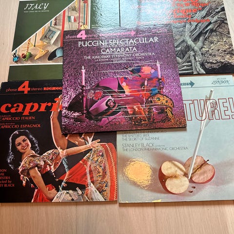 En liten samling gamle vinylplater, klassisk selges svært billig. De har noen riper, men er prøvespilt og spiller uten hakking. Kr 39 pr stk eller kr 100 for alle tre. DVORAK New World Symphony; Symphony no 9 in E minor opus 95, OPERA A GOGO Carmen Aida Ricoletto Nabucco Martha Tannhauser, TCHAIKOVSKY The Sleeping Beauty Swan Lake. Passer for samlere og entusiaster av klassisk musikk. Ta kontakt for flere detaljer. Se også mine andre annonser med LP-er