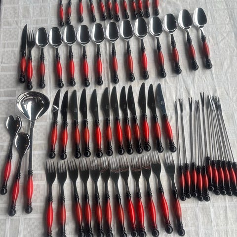 Rustfritt stål bestikksett med skjeer, kniver og gafler