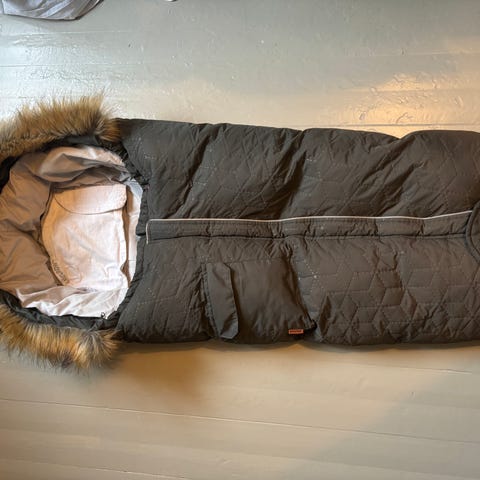 - Posen er fylt med en blanding av 80% dun og 20% fjær for optimal isolasjon. Den har også et lag med vaskbar ull i ryggen som bidrar til naturlig temperaturregulering. Ytterstoffet er robust polyester med Bionic Finish ECO-impregnering, noe som gjør den vind- og vanntett (3000 mm vannsøyle). Innerforet er av myk, økologisk bomull.
