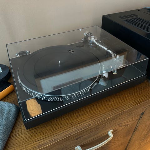 Denne platespilleren er i veldig god stand, med få tegn på alder og bruk (se bilder). Alle innstillinger fungerer perfekt, og tallerken rotasjon er dønn stabil (direct drive). Inkluderer 7" alu adapter, Messing tallerken og platestrammer inngår ikke i handelen Technics SH-50P1 elektronisk pickup vekt. (ikke helt stabil) Størrelse: Bredde 52cm, dybde 44 cm, høyde kabinett 10,5 cm + høyde tonearm 9,5 cm. Bør hentes, men kan pakke godt og sende for kjøpers regning og risiko. Forskuddsbetaling, har Vipps. Selges u/pickup. Skambud frabes, og vil ikke bli besvart.