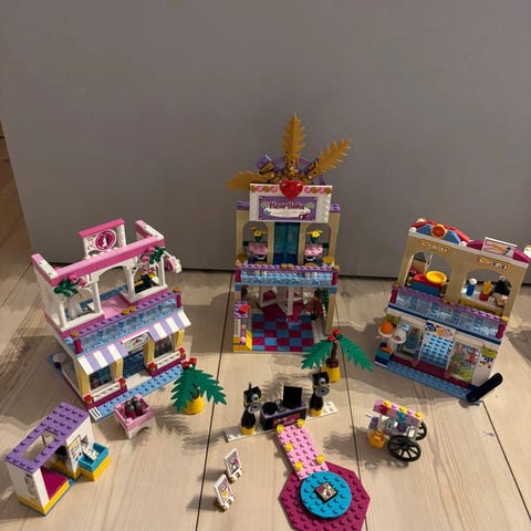 LEGO Friends kjøpesenter. Flere rom og detaljer. Inkluderer små figurer og tilbehør som barnevogn og ulike møbler. Passer for barn som liker å bygge og leke med temabaserte sett.
