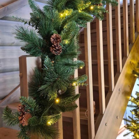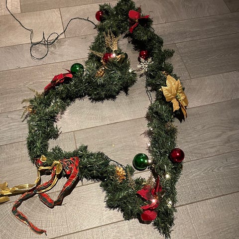 Girlander med lys. Ene lengden har et kabelbrudd så ikke lys i ene lenken.