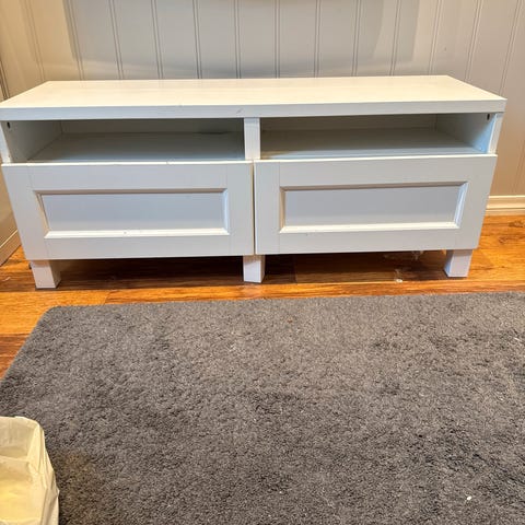 Pent brukt Tv benk m/ veggoppheng i svart høyglans m /oppbevaringsplass til DVD, CD plater etc…