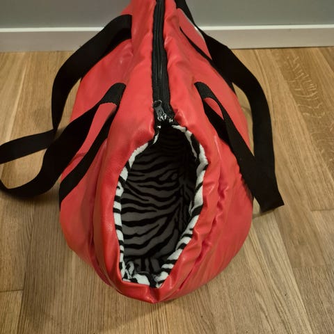 Praktisk åpning foran og ovenfra på bagen.Passer til liten hund.