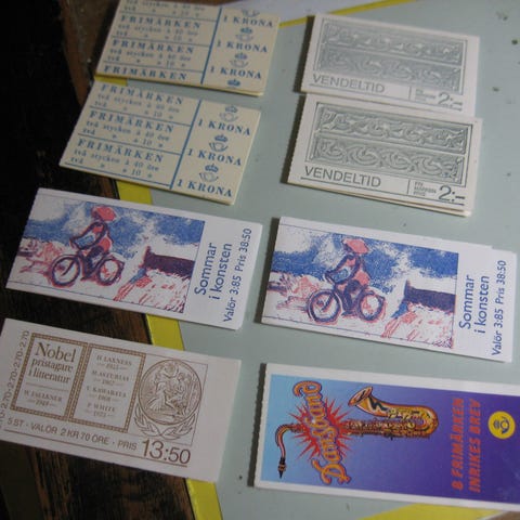 Hel og fin innstikkbok 16 sider med postfriske frimerker og frimerkehefter fra Sverige. Mangler merke på noen av heftene. Se bilder som viser alle merkene. Hentes på Jessheim eller sendes mot forhåndsbetaling pluss porto. Porto kr 75,- som sporbar postpakke.
