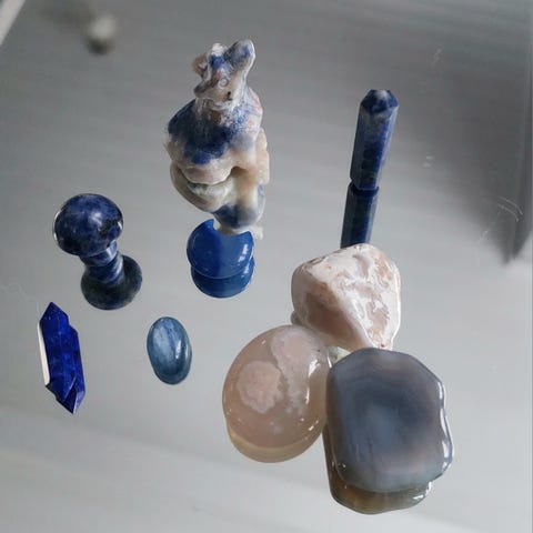 *Flammekvarts, rosenkvarts og rosa opal tromlet stein