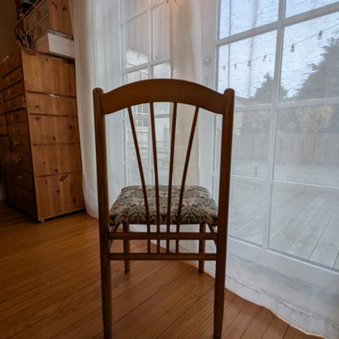 Eldre stol i tre. Noe slitasje, men kul stol. Renset og oljet.