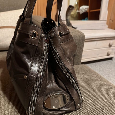 Pent brukt, kun hankene er litt slitte, se bilder. Kan gå over 1 lag med lærfarge eller snurre et skjerf twilly over. 2 store inndelinger hvorav den ene har glidelås.