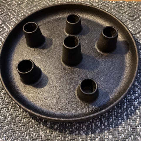 Iittala lysestake med plass til seks lys. Lysestaken er sort og laget av støpejern. Den er designet av Andreas Engesvik for ittala. Er ikke lenger i produksjon.