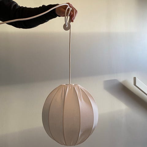 Taklampe med kuleformet design i metall. Passer til montering i tak og gir dekorativ belysning. 60 cm kuleformet. Må hentes på Ågotnes.