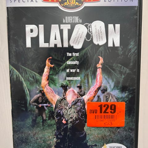 Belønt med fire Oscar®-priser, deriblant for beste film, og basert på den Oscar®-belønte regissøren Oliver Stones opplevelser, er "Platoon" den mektige, fengslende og brutale historien om en naiv, amerikansk soldat (Charlie Sheen) og hans møte med kaoset og redslene i Vietnamkrigen. Filmen er opprivende realistisk og fullstendig overbevisende, og den er et dystert, uforglemmelig minnesmerke over alle soldatene som tapte sin uskyld i Vietnams krigsherjede jungler.