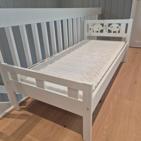 Liten hvit junior barneseng vokseseng gis bort. Kan slås ut.. Bor kun 15 minutt fra Oslo grensa nordover. Kan hentes søndag fra kl. 18.00