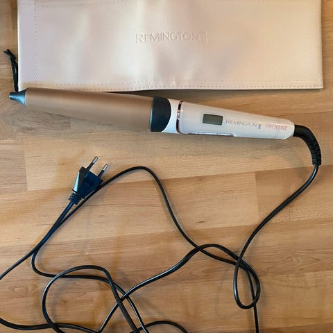 Remington tjukk krølltang med ulike varmeinnstillinger selges. Den begynner på 140 og går opp til 210 grader. Krølltangen lager store og fine krøller.