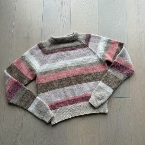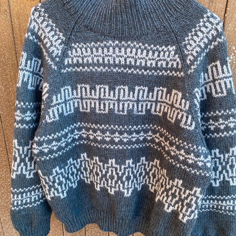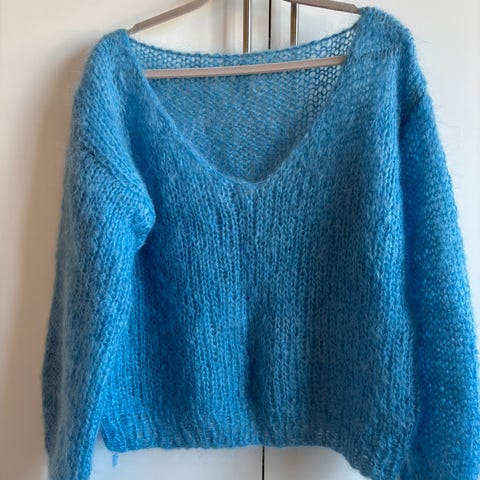 Hjemmestrikket genser som dessverre ikke ble som tenkt. Brukt 2 ganger og har ingen nupper eller bruksmerker.