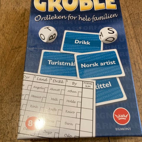 Spill «Gruble». Ny/ubrukt, i original emballasje. Familiespill, ordlek. Ny pris var ca kr 170,-.