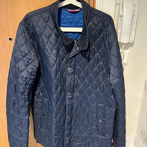 Mørk blå. Str xl. Hette i kragen.