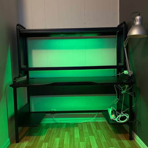 Julegave til sønnen/datteren? Hel og grei pult. Har et koppmerke og noen bruksriper på plata. Nettopp vasket før bildet ble tatt, er ikke ujevn farge.
