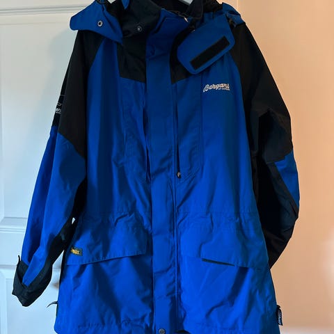 Fin Bergans ytterjakke med innerfôr. Str L. Lys beige farge. 88 cm lang målt bak fra hals og ned. Jakken er lysere beige enn det de fleste bildene viser.
