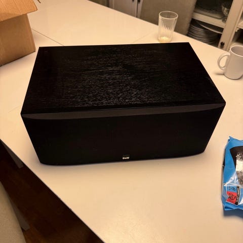 Senterhøyttaler fra annerkjente Bowers & Wilkins, modell HTM62. Hel og pen, inkl støvdeksel. Diskanten har en bulk fra forrige eier, men lydmessig fungerer den helt fint.