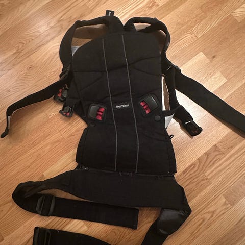 Ikke like ergonomisk som nyere modeller (f.eks. Ergobaby som jeg også har hatt), men veldig enkel å ta av og på, og baby har ligget godt og trygt i den.