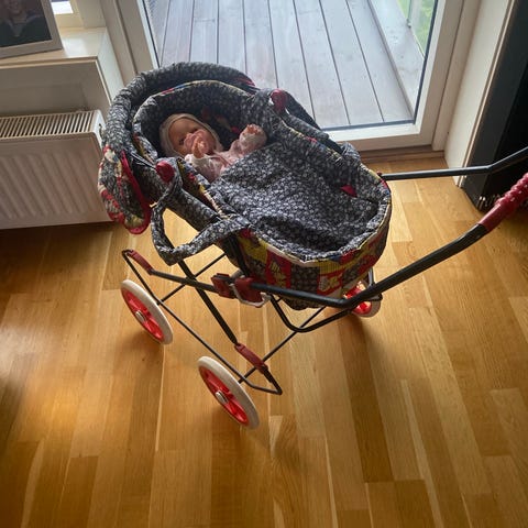 Baby Born dukkevogn i rosa farge. Laget for lek med dukker, utstyrt med justerbart håndtak, rygg og fotstøtte. fire hjul for enkel manøvrering.