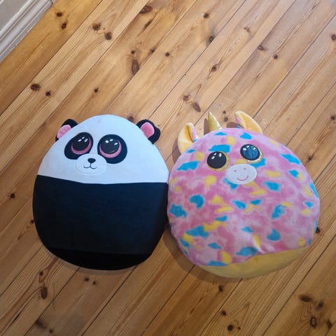 Fantorangen kosedyr sett bestående av en sau og en elefant. Kosedyrene er laget i mykt materiale og har detaljer som gjør dem velegnet for barn. Passer som lek eller kos for barn.