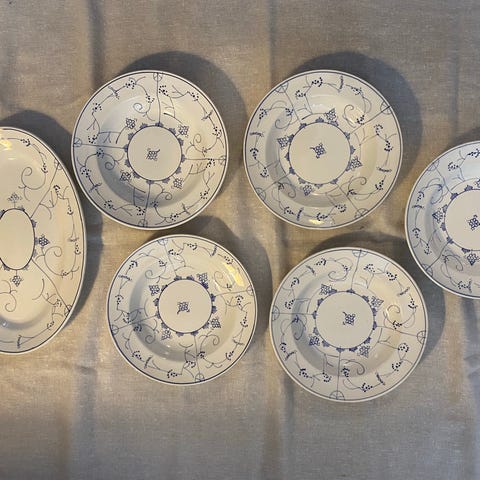 Tallerken av forskjellige størrelser er 8 av hver type de minste er tefat